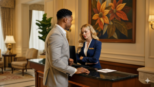 — «Buenas tardes, tengo una reserva para la Suite Presidencial a nombre de Mateo Dumont», dijo él con cortesía.