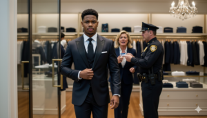 La mañana en la Séptima Avenida transcurría con la elegancia habitual. Mateo, un joven de aspecto sencillo, caminaba entre los estantes de trajes italianos. Su mano, curiosa y apreciativa, se posó sobre la manga de un traje de lana virgen valorado en diez mil dólares. No buscaba lujo por vanidad; buscaba entender la calidad de lo que pronto heredaría.