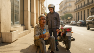 Mateo le dedicó una sonrisa rápida, subió a su moto y se marchó a toda prisa. Sabía que ese retraso le costaría caro, pero sentía el corazón extrañamente ligero. Lo que Mateo no sabía era que ese pequeño acto de caridad genuina acababa de activar los engranajes de una maquinaria llamada destino.