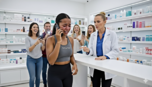 Al acercarse al mostrador, tomó una caja de medicamento premium. Sus manos, cansadas tras un largo día de estudio y ejercicio, apenas rozaron el empaque cuando una voz aguda y cargada de veneno la interrumpió.