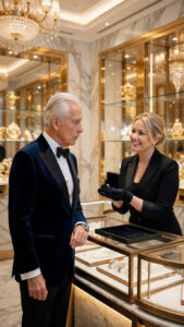 Al cruzar el umbral, fue recibido por Elena, una vendedora cuya sonrisa era tan pulida como las vitrinas que custodiaba. Don Alberto no era un cliente común. Su sola presencia exigía respeto, y su petición fue directa: «Señorita, busco un anillo especial… quiero lo mejor».
