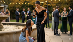 Elena, humillada y con el corazón roto, se arrodilló para recoger los restos de su regalo. La risa de Victoria resonaba en el jardín, mientras los invitados miraban hacia otro lado, cómplices de la injusticia por miedo o indiferencia.