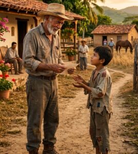 Don Anselmo, el hombre más longevo de la región, cuya piel parecía un mapa de arrugas tallado por el viento y el sol, se detuvo frente al pequeño Mateo. El niño, con su ropa remendada y los pies curtidos por el polvo, miró con curiosidad al anciano. Don Anselmo no era hombre de muchas palabras, pero esa tarde, bajo la luz dorada del atardecer, su voz sonó con una gravedad inusual.