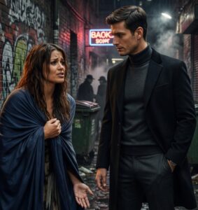La lluvia fina golpeaba el pavimento de adoquines, creando un espejo oscuro que reflejaba la desesperación de Elena. Ella no era una mujer común; sus ojos cargaban el peso de un secreto oscuro que la perseguía por los rincones más lúgubres de la metrópoli. Con un chal azul envolviendo sus hombros como un escudo improvisado, Elena buscaba una salida, pero solo encontraba muros cubiertos de graffiti y el eco de sus propios pasos.