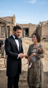 Julián lucía un esmoquin impecable, una pieza de sastrería que gritaba éxito. Pero frente a él, la realidad lo golpeó con el olor a tierra seca y desesperación. Elena, la mujer que alguna vez amó en secreto, sostenía a un bebé indefenso entre sus brazos. Sus ropas eran harapos, su rostro estaba surcado por lágrimas de impotencia y el hambre se reflejaba en sus ojos hundidos.