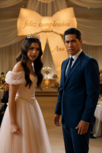 La música de vals inundaba el salón decorado con opulencia. Ana, radiante en su vestido rosa pálido y una corona que brillaba bajo las luces, parecía la viva imagen de un cuento de hadas. Pero detrás de la elegancia y los brindis, se gestaba una tormenta que nadie vio venir. En el momento más emotivo de la noche, un hombre de traje impecable dio un paso al frente, interrumpiendo la ceremonia.