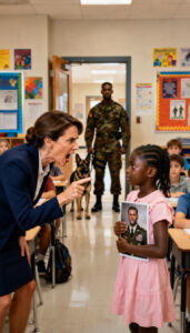 Era una mañana fría cuando la pequeña Elena, una niña de mirada dulce pero marcada por la tristeza, sostenía con fuerza un pequeño portaretratos. En él se veía a un hombre con uniforme militar, un héroe que, según los rumores del barrio, había caído en combate defendiendo la frontera. Elena no hablaba mucho; su consuelo era mirar esa foto mientras intentaba concentrarse en las ecuaciones matemáticas que la profesora Mariana dictaba con desdén.