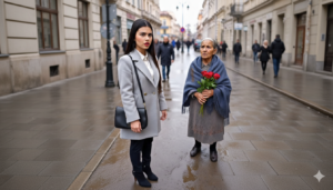 Las risas de Valeria y su séquito resonaron en la calle. «¡A ver si con eso puedes comprarte una casa!», gritó una de las amigas, burlándose de la apariencia humilde de la vendedora de rosas. Pero la anciana no se inmutó. Guardó el dinero, miró hacia el cielo y sacó un teléfono móvil.
