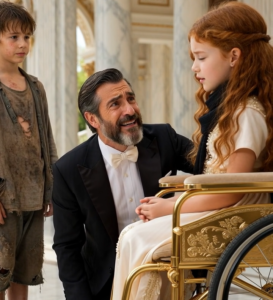 Un día, mientras Don Alberto regresaba temprano de un viaje de negocios, se encontró con una escena que lo dejó frío. En la entrada de su majestuosa mansión, un pequeño niño huérfano, vestido con harapos y pies descalzos, se interpuso en su camino.