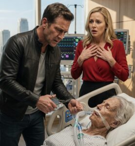 Con el corazón acelerado, Julián se acercó a la cama de su suegra. Sabía que cada segundo contaba. La mirada de Elena se transformó; ya no era la esposa que él conocía, sino una extraña consumida por la ambición. El video muestra ese momento exacto de tensión máxima: Julián protegiendo el equipo médico mientras Elena, en un grito silencioso de desesperación, se daba cuenta de que su plan maestro se desmoronaba.