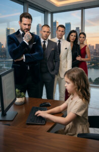 En medio de esa tormenta de gritos y desesperación, una pequeña figura se mantenía sentada frente a uno de los monitores principales. Era una niña de no más de ocho años, vestida con sencillez, que había acompañado a su madre, la mujer de la limpieza, porque no tenía con quién dejarla. La pequeña, con una calma que contrastaba con el pánico general, movía sus manos sobre el teclado con una velocidad asombrosa.
