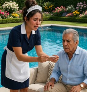 Era una mañana soleada, el reflejo del agua cristalina de la piscina de la mansión parecía transmitir paz, pero para Don Alberto, esa calma estaba a punto de romperse en mil pedazos. Mientras descansaba en su sofá de jardín, su fiel empleada doméstica se acercó con el rostro desencajado y una carta de herencia en la mano.